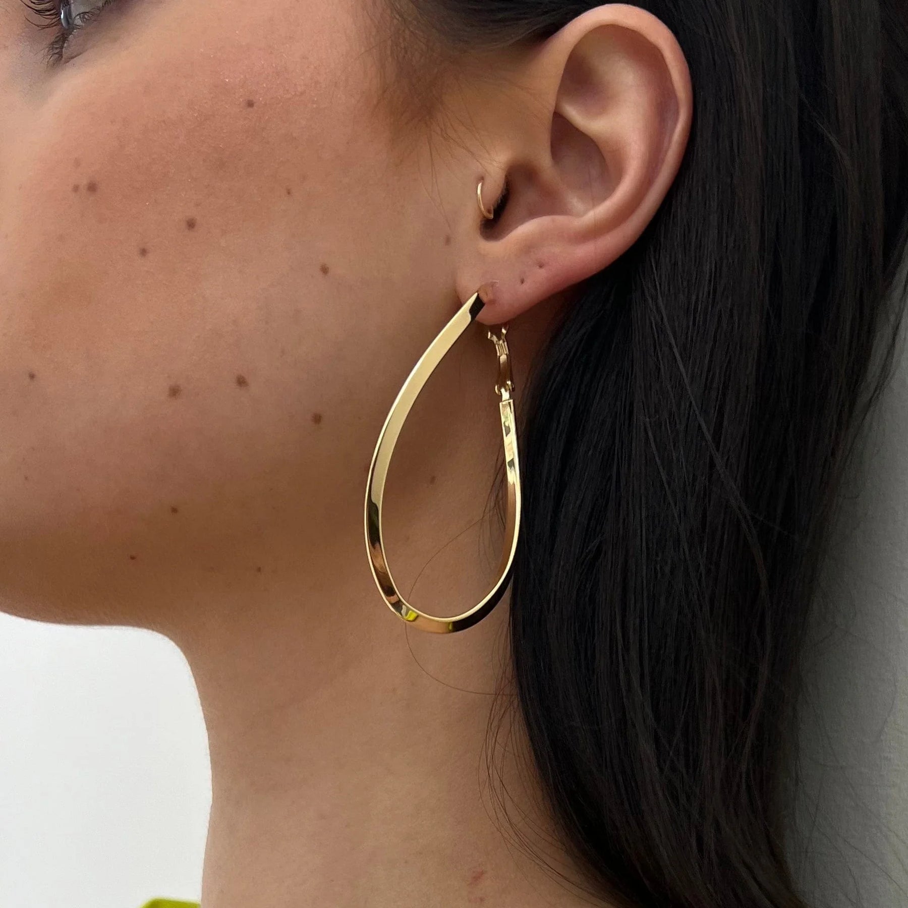 A curved, elongated frame add interest and an artistic vibe to these hoops.
